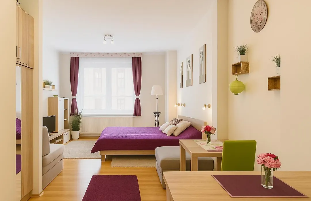 De 1-badkamer accommodatie biedt een zitruimte die zijn ingericht met een bank en een bureau, samen met moderne voorzieningen zoals een satelliet-TV en een flatscreen TV met satellietzenders. Rookmelders maken deel uit van de veiligheidsvoorzieningen op de kamer. Dit appartement beschikt over 1 slaapkamer met donzen kussens. 1 badkamer met een inloopdouche en een apart toilet zijn aanwezig in deze accommodatie. U kunt ook kamerjassen en handdoeken gebruiken.
